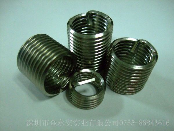 螺纹丝套是一种新型的螺纹紧固件,分为普通型和锁紧型与无尾型三种。可嵌入金属或非金属材料上形成高强度、耐磨损具有互换性的标准螺纹,也可用于修复磨损或损坏的内螺纹孔。由高精度菱形截面的不锈钢丝精确加工而成的一种弹簧状内外纹同心体。锁紧型螺套除具有普通型的全部功能外,还具有螺纹锁能力;这是依靠其多边形锁紧圈的弹力对螺钉进行制动。